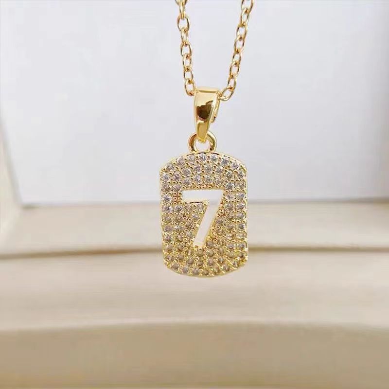 Sweet and Clear INS Trend 7-character Square Brand Letter Necklace Temperament Full Diamond High-end Sense Fashion Simple Clavicle Chain
