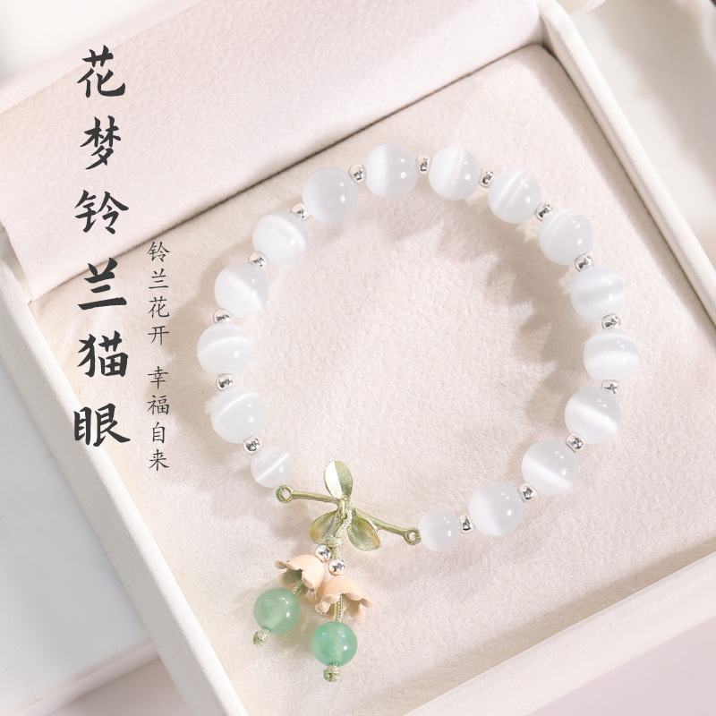 Small Clear Sweet Wind Cat's Eye Stone Silver Bead Crystal Bracelet Leaf Flower Natural Pink Crystal Green East Mausoleum Blue Chalcedony