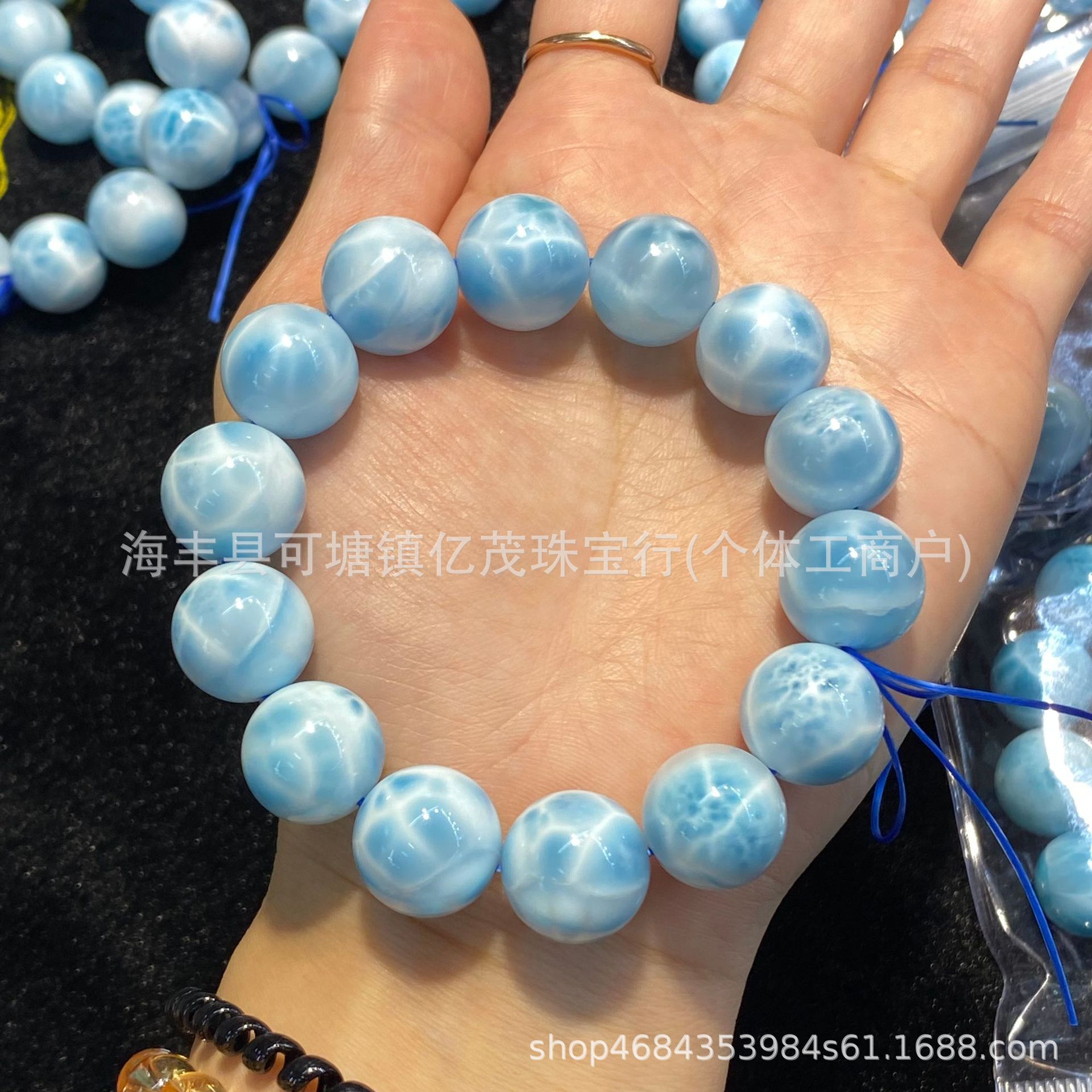 Natural blue rabbit hair round beads single ring bracelet hair clear blue gray rabbit hair handmade diy accessories manufacturers wholesale