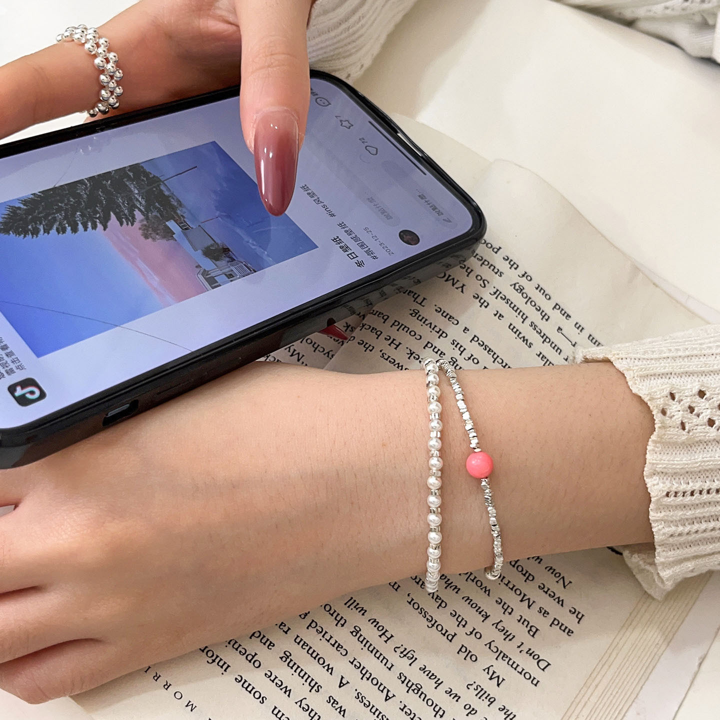 Silver Ruitai s925 sterling silver round bead bracelet for girls with clear and simple fashion women's bracelet ins