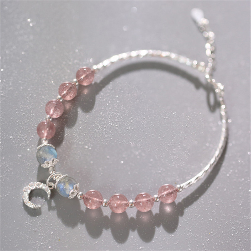 Peach Blossom Strawberry Crystal Bracelet for Women, Pink Crystal Transfer Beads, Small Clear Niche, Exquisite Double Circle Bracelet Gift Wholesale