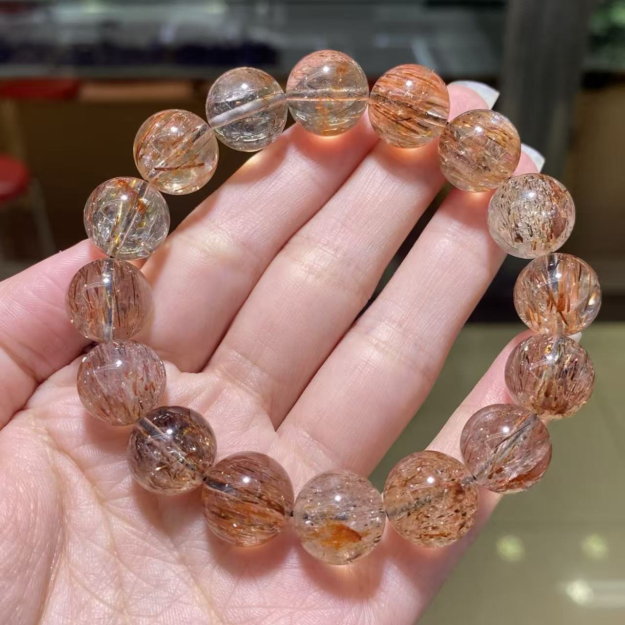 Jingde jewelry natural black gold super seven bracelet hair clear vision crystal round bead bracelet jewelry wholesale