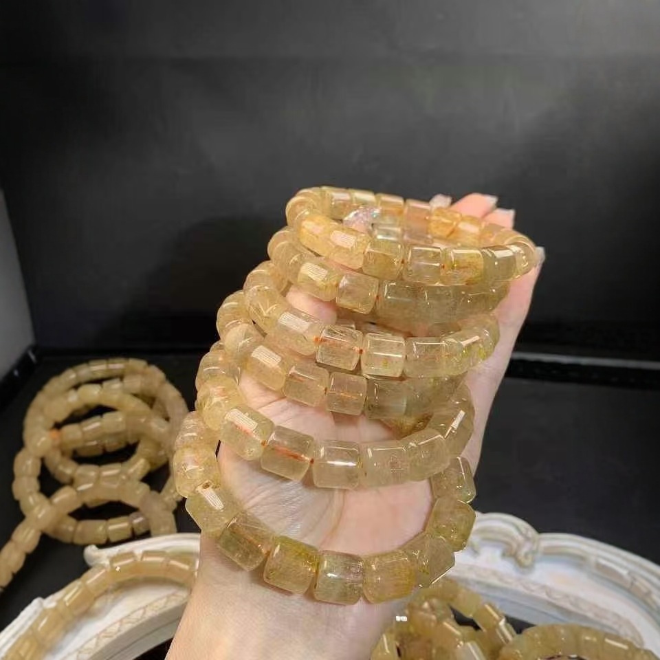 Golden crystal barrel beads bracelet domineering full hair clear natural golden crystal barrel beads women's bracelet manufacturers wholesale