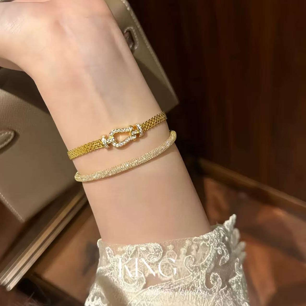 Xiaohongshu's Popular Milanese Horseshoe Buckle Braided Bracelet Gold-Plated Hollow Strap Fashionable Clear and Simple Wholesale