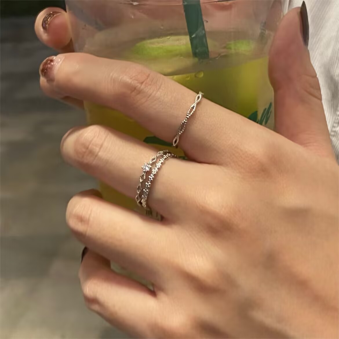 S925 Silver Lace Double-Layer Zircon Crown Ring Japanese and Korean Simple Small Clear Stylish Open Ring for Women J4728