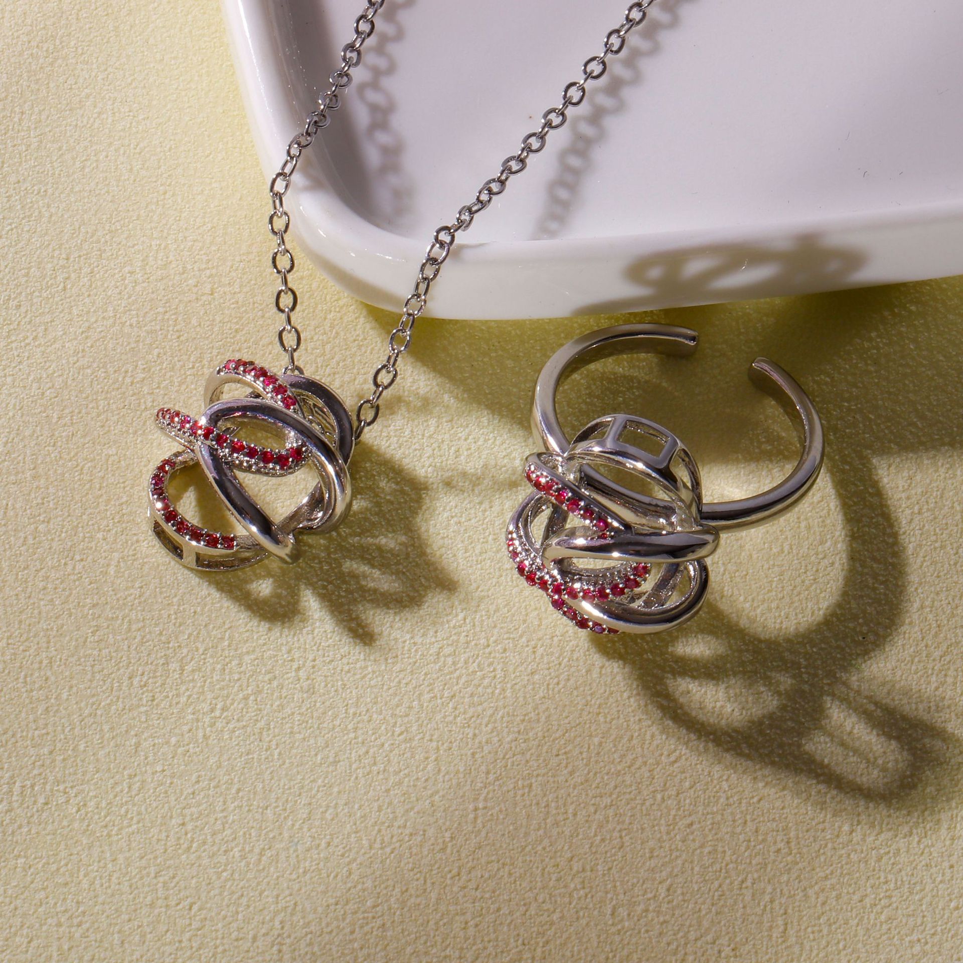 New Year's Red Necklace Set with Diamond Earrings, Elegant Ring Jewelry Set, Simple Hong Kong Style Retro Style Earrings, Small and Clear