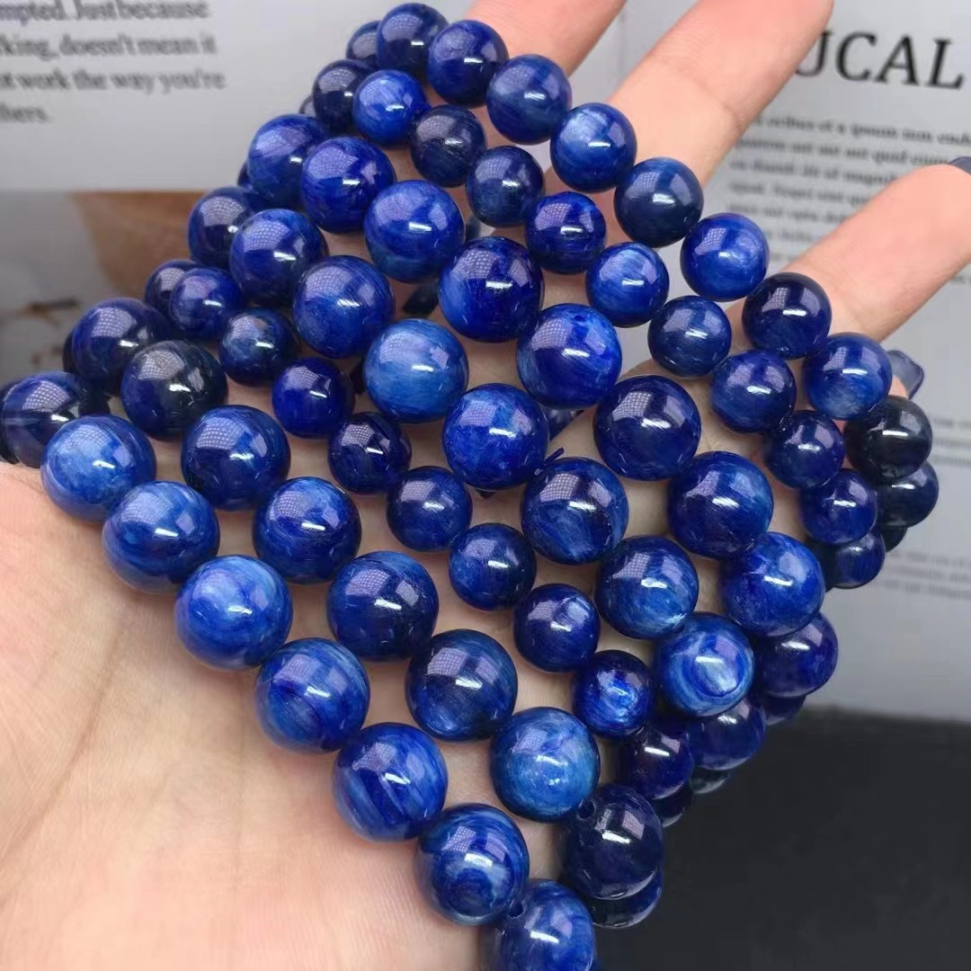 Natural Kyanite Bracelet New Fashion Kyanite Bracelet Round Bead Jewelry Wholesale Cat's Eye Clear Color Bright Blue