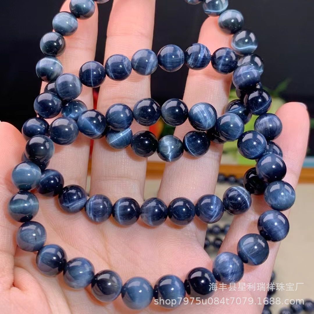 Natural Tiger Stone Blue Tiger Eye Stone lightning Tiger beads bracelet lightning pattern clear cat eye crystal round beads single Circle Bracelet