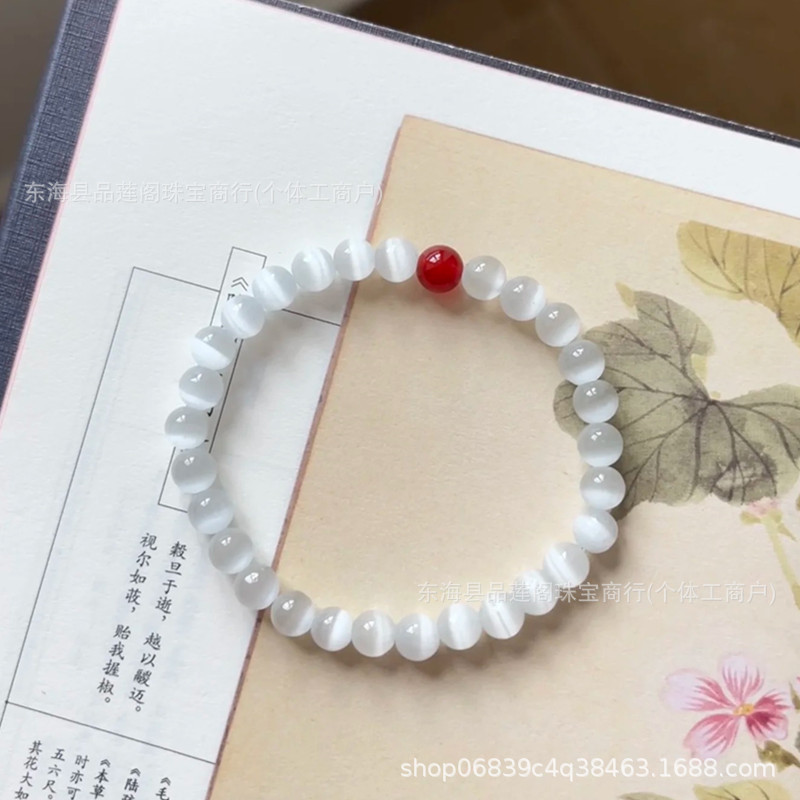 White Cat's Eye Stone Red Agate Bracelet for Women, Light Luxury, Small Clear Obsidian Versatile Bracelet, New Chinese Style Versatile Jewelry
