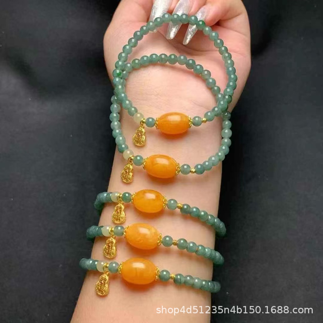 Russian Natural Beeswax Design Bracelet with Jade Full Wax Pattern, Clear and Plump, Fresh and Elegant