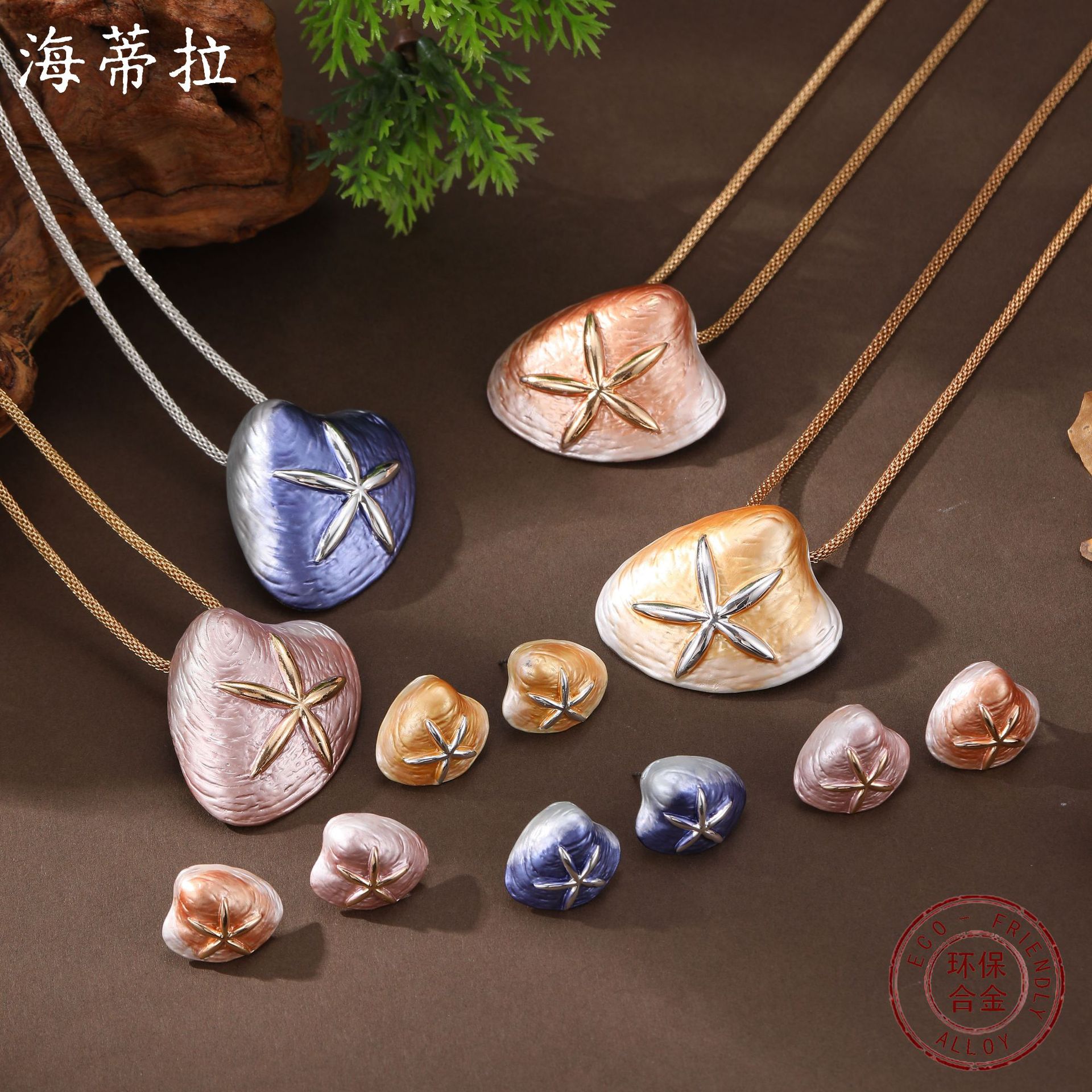 Cross-border New Enamel Shell Earrings Pendant suit Women's Small Clear Spring and Summer Starfish Shell Necklace