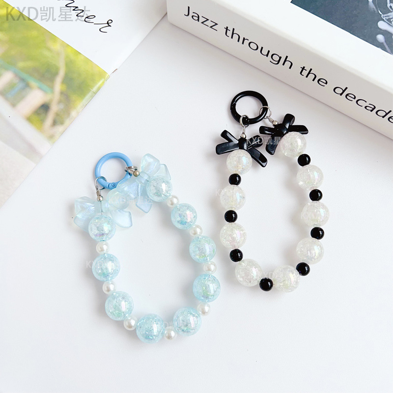 Summer small clear bow mobile phone chain beads creative crack beads car ornaments cute girl live blind box
