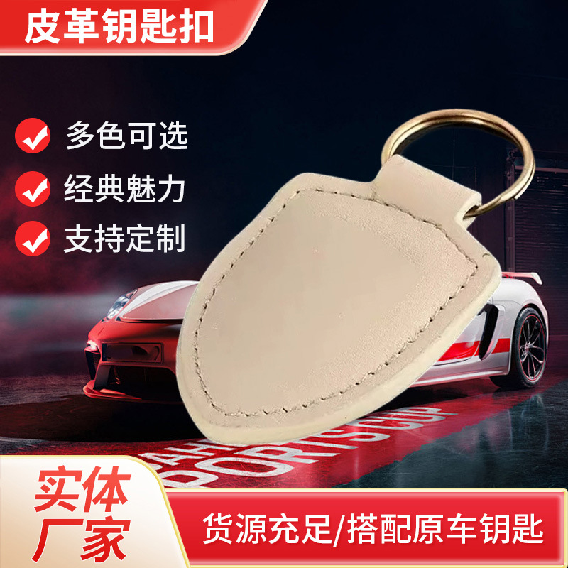 Cross-border Porsche Leather Keychain Bordeaux Red Car Keychain Pendant Printable logo Shield Key Chain