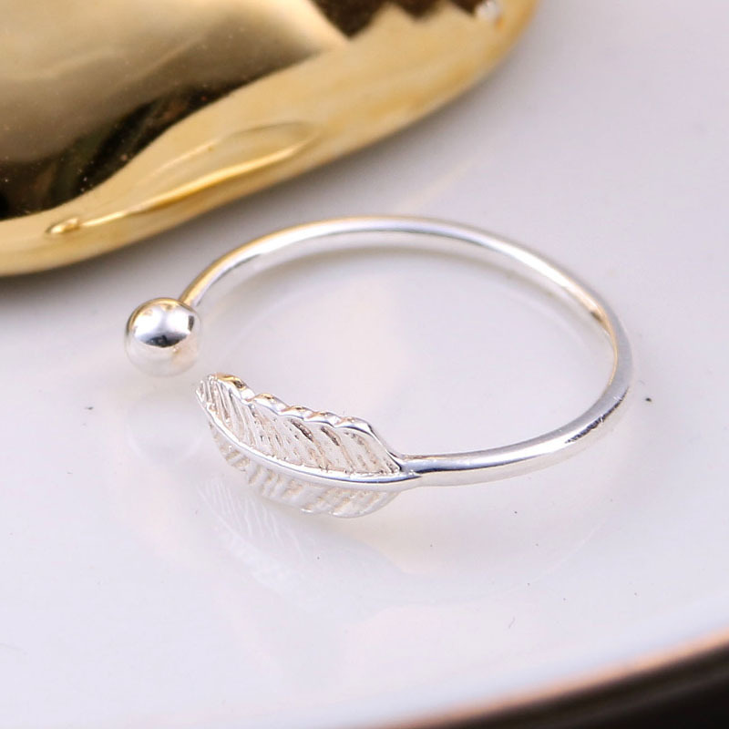 Luo Tai S925 silver ring Korean fashion simple small clear sweet leaf ring Women's Open feather tail ring