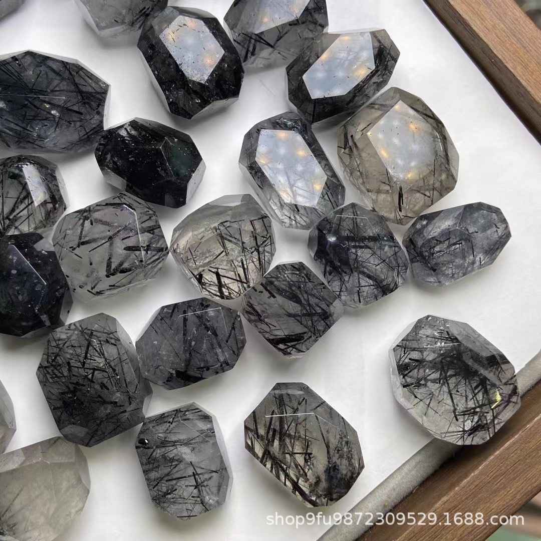 Natural Black Hair Crystal Random Loose Stone Black Hair Crystal Hair Strands Clear and Transparent Handmade DIY Bracelet Raw Stone Faceted Wholesale