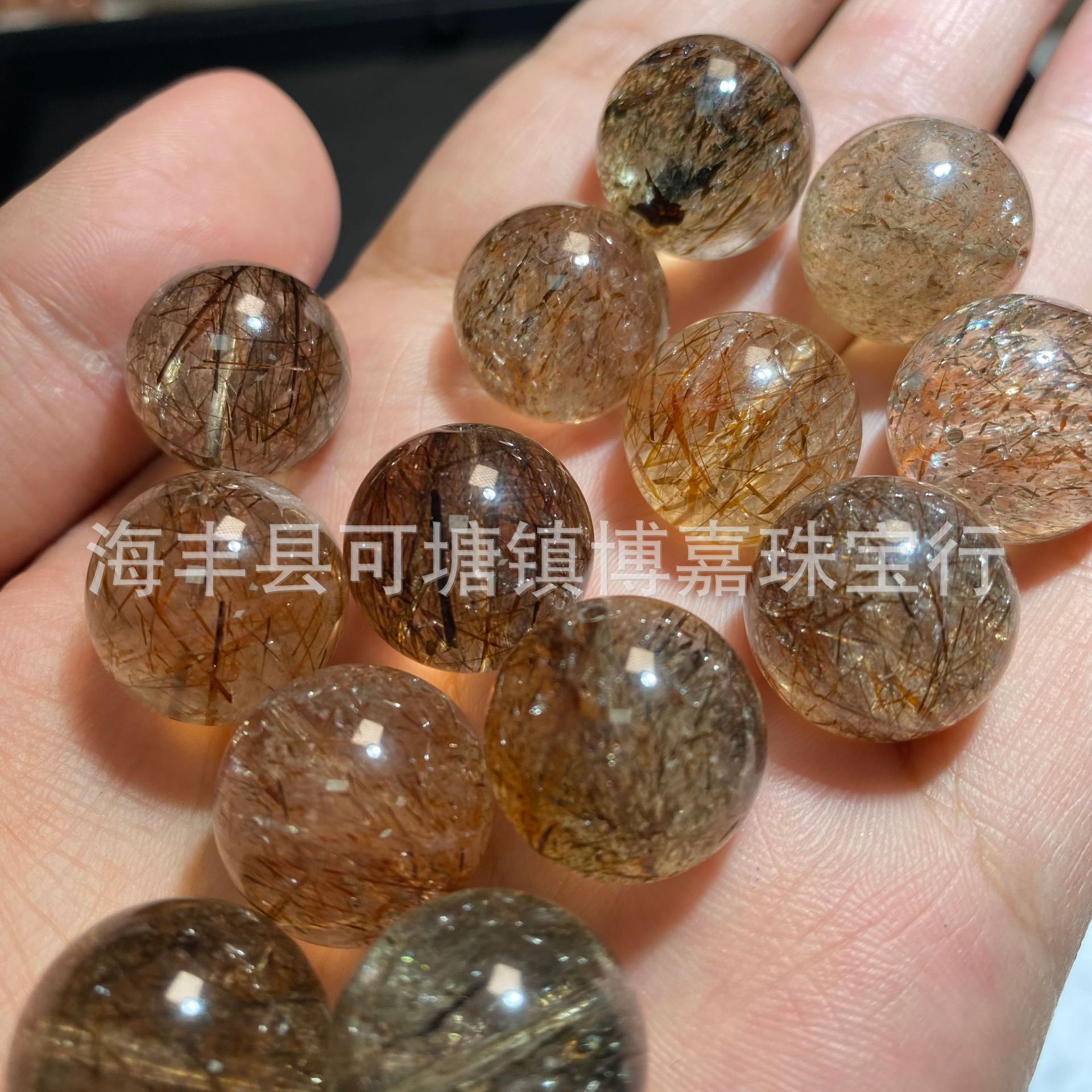Natural black gold super seven single bead hair clear microstrip flash perforated through hole black gold super seven round bead loose bead wholesale