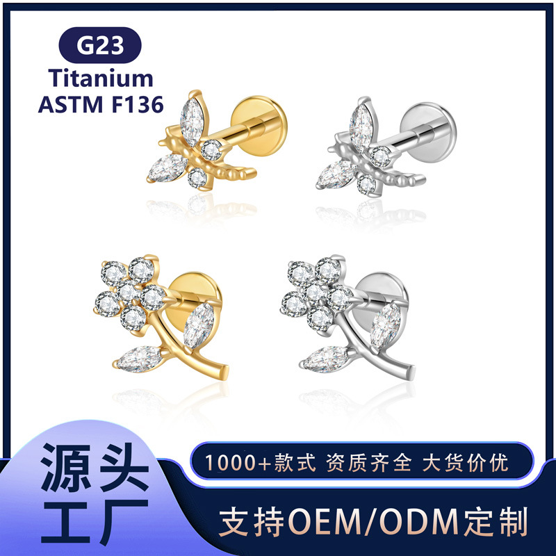 G23 Titanium Alloy Earrings Small Clear Dragonfly Inlaid Zircon F136 Titanium Body Piercing Jewelry Lip Nail Ear Bone Nail
