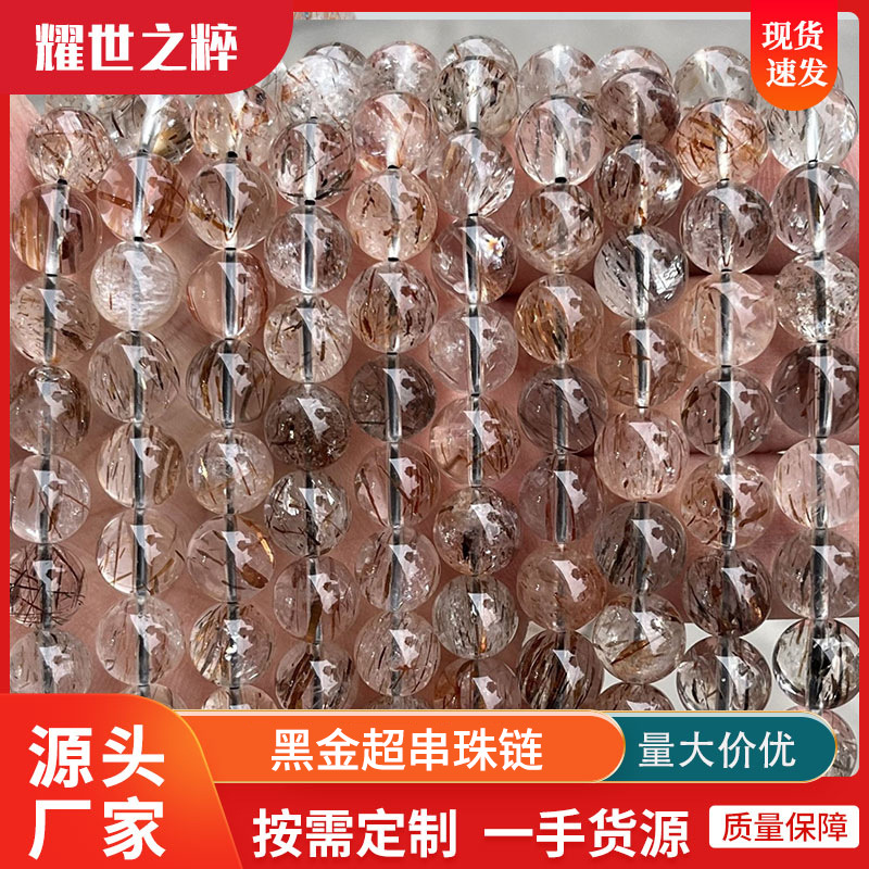 Natural Black Gold Super Seven Crystal Loose Beads with Clear Strands Semi-Finished DIY Bracelet Necklace Round Bead Jewelry Accessories