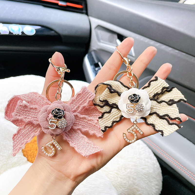Fragrant Bow Keychain Pink Camellia Pendant Bag Pendant Niche Clear Bag Pendant Wholesale