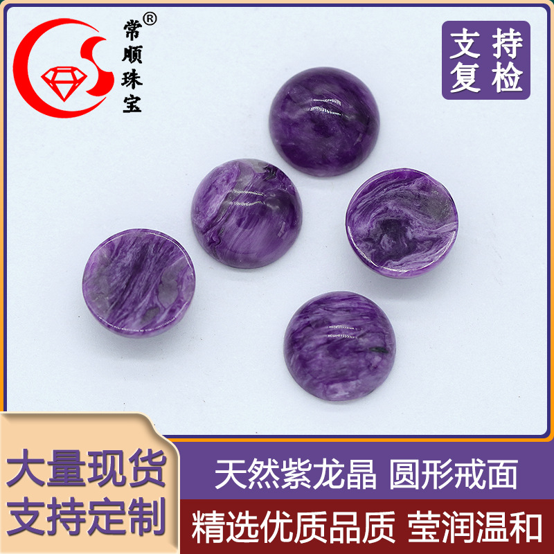 Wholesale natural purple dragon crystal ring surface round gem check Luo stone Purple Dragon Crystal clear pattern jewelry inlaid with Stone