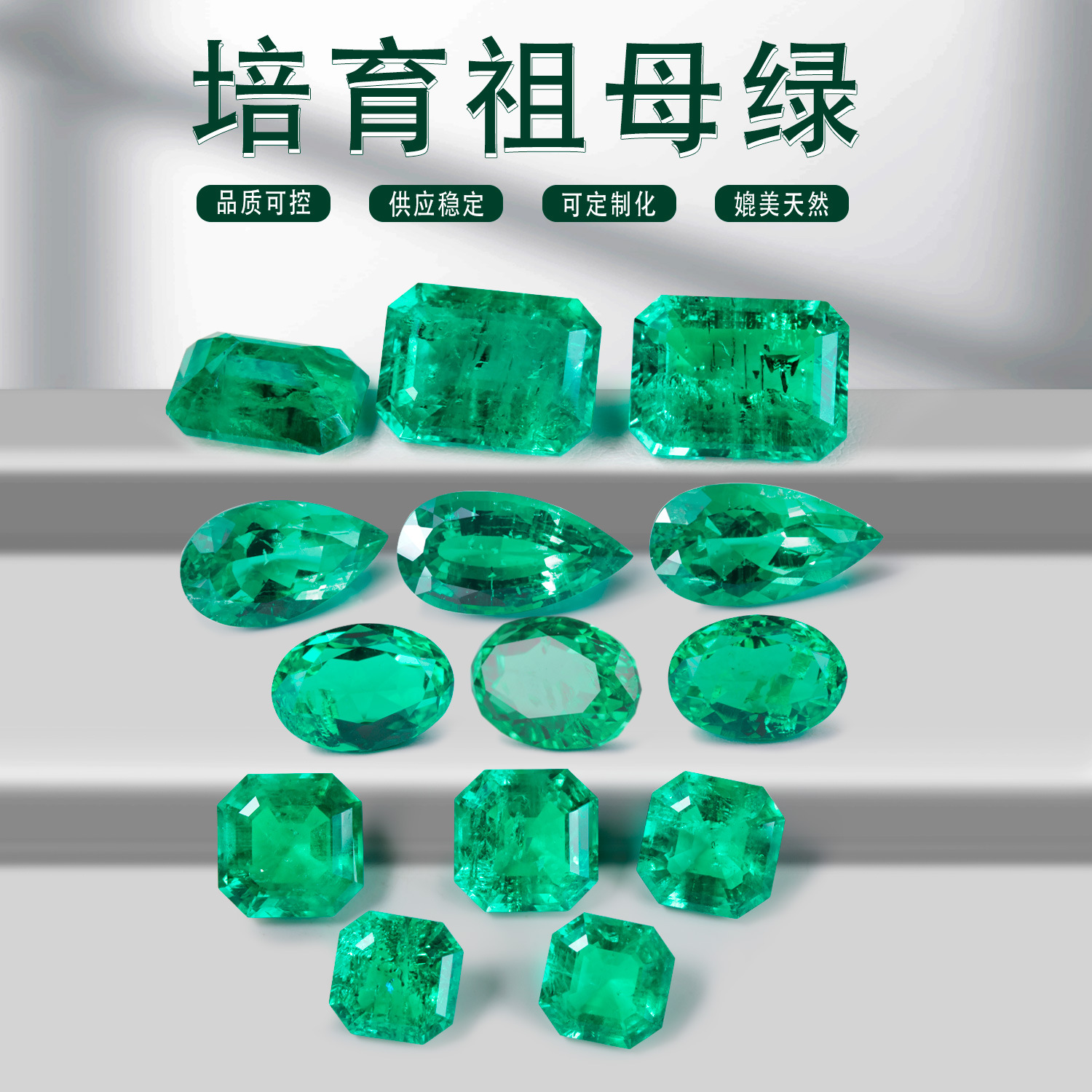 Lab-Grown Emeralds, Colombian Gemstones, Loose Stones, Wholesale from Wuzhou Manufacturer, Lab-Grown Gemstones in Stock