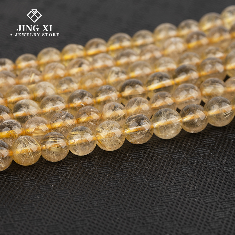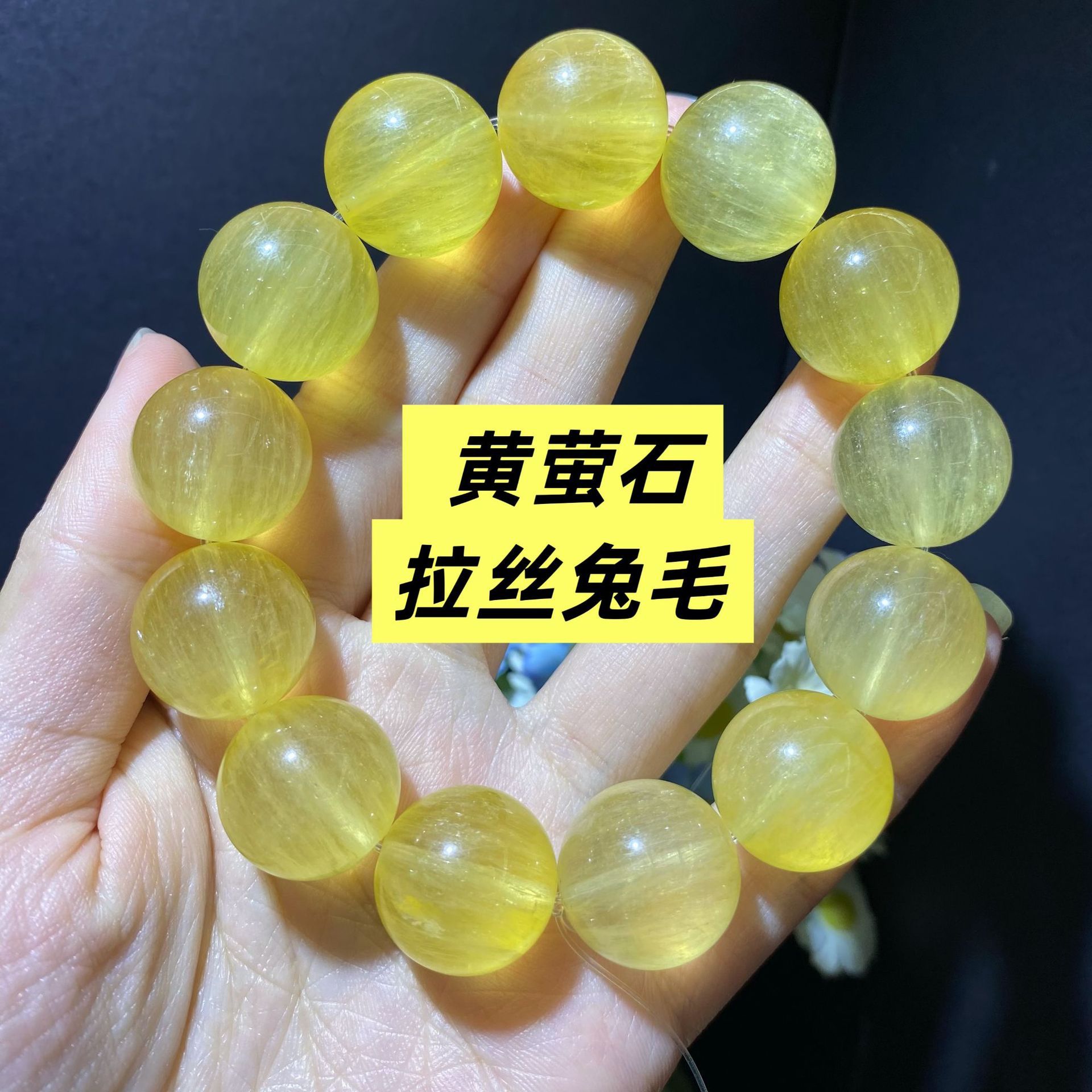Natural Brushed Rabbit Hair Yellow Fluorite Bracelet Crystal Clean and Clear Smooth Rabbit Hair Fluorite Bracelet DIY Loose Beads