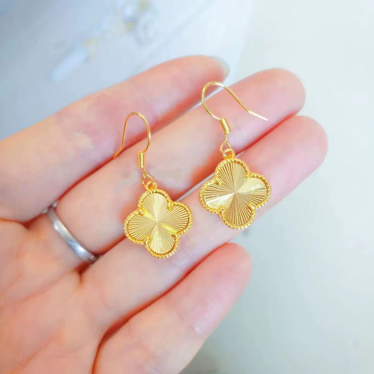 Xiaohongshu Laser Double-Sided Ear Hooks, Gold-Plated Small Clear Clover Earrings, Live Broadcast Hot-Selling Supply Jewelry