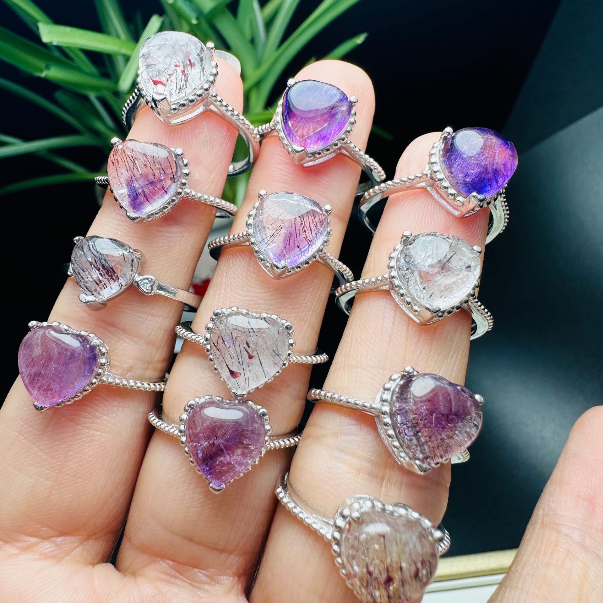 Natural Super Seven Love Ring, S925 Silver Setting, Clear Hair Quality Meets Standards, Wholesale Is Supported.
