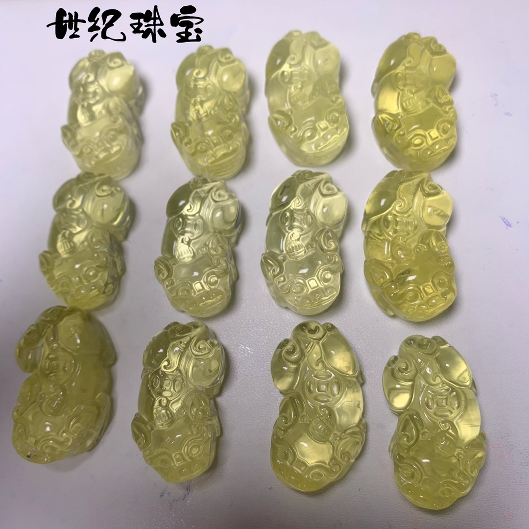 Natural Lemon Citrine Elbow-Shaped Pixiu Jewelry Accessory, Crystal Clear and Transparent, Pendant DIY Bracelet Charm