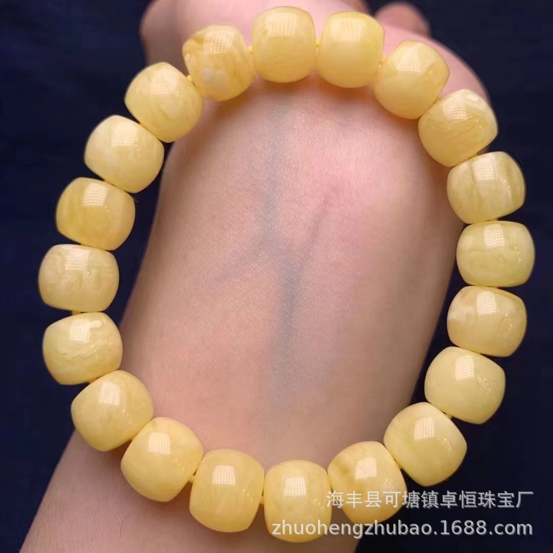 Wholesale Amber Beeswax Bracelets, Russian White Flower Wax with Clear Texture, Low Price, Live Broadcast Standard Product, Good Wax Quality