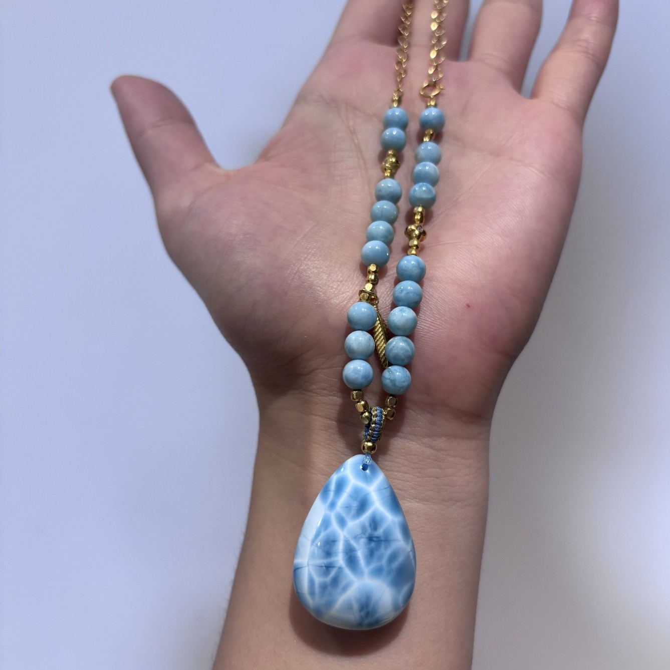 33*24*11mm Natural Domini Sea Pattern Stone Water Drop Pendant S925 Accessories with Clear Texture and High Ice Jade