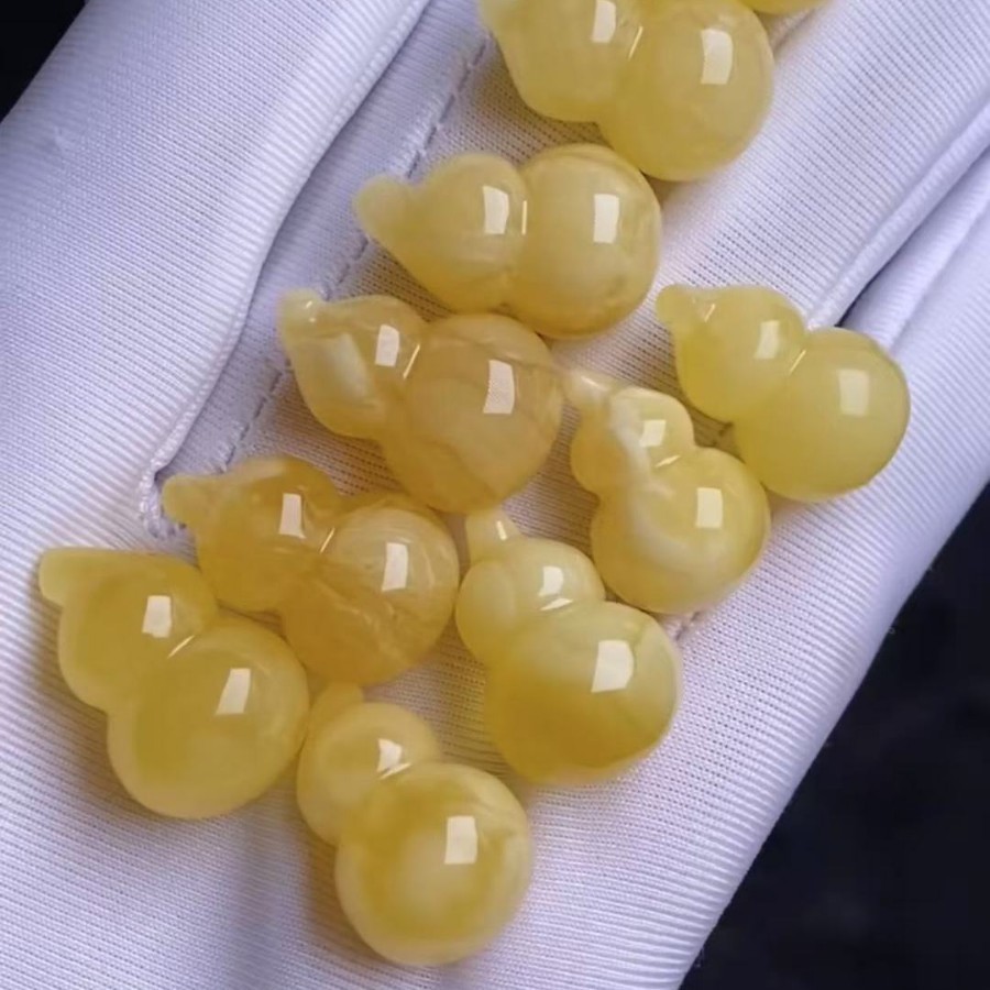 Natural Amber Beeswax Small Boutique Gourd Fulu Pendant, Rich Wax Texture, Clear and Beautiful Shape, Full m