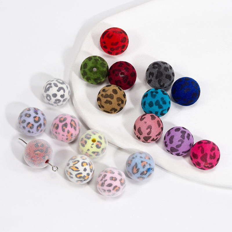 Acrylic Flocked Leopard Print Round Beads Straight Hole Handmade DIY Material Bag Necklace Mobile Phone Rope Keychain Accessories