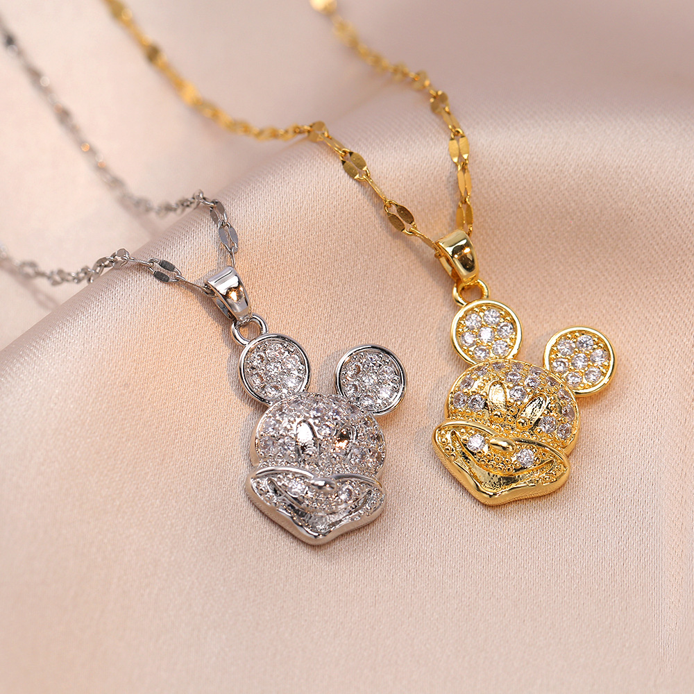 Necklace for Women, Korean and Japanese Style, Fashionable and Simple Zircon Mouse Necklace, Trendy and Elegant Titanium Steel Clavicle Chain