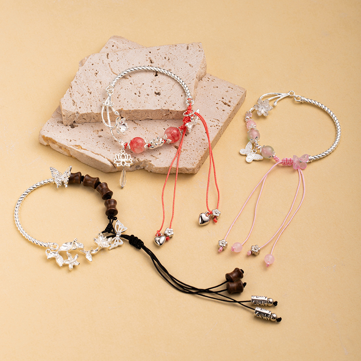 New Chinese Butterfly Lotus Beaded Tassel Bracelet Women's Light Luxury High-end Sense Super Fairy Small Clear Thin Half Bracelet Bracelet