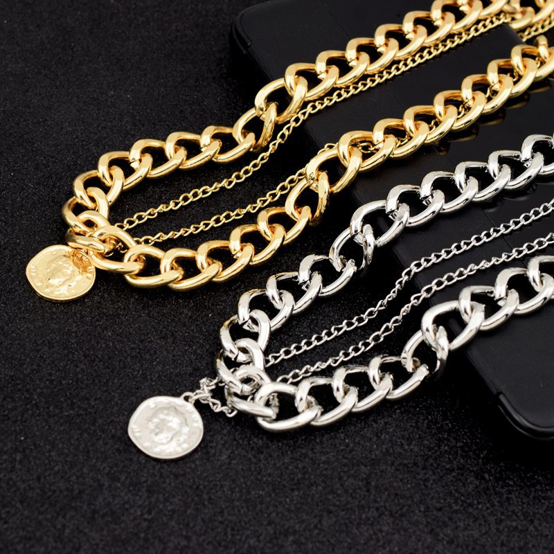 Factory supply alloy fashion queen double necklace European and American wind stacked wearing two layers of clavicle chain necklace wholesale