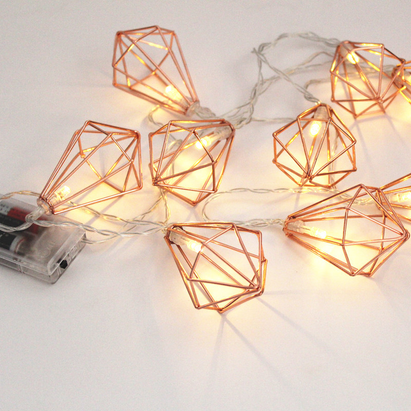ins Net red water drop light string led small clear rose gold diamond geometric iron small light string decorative lights wholesale