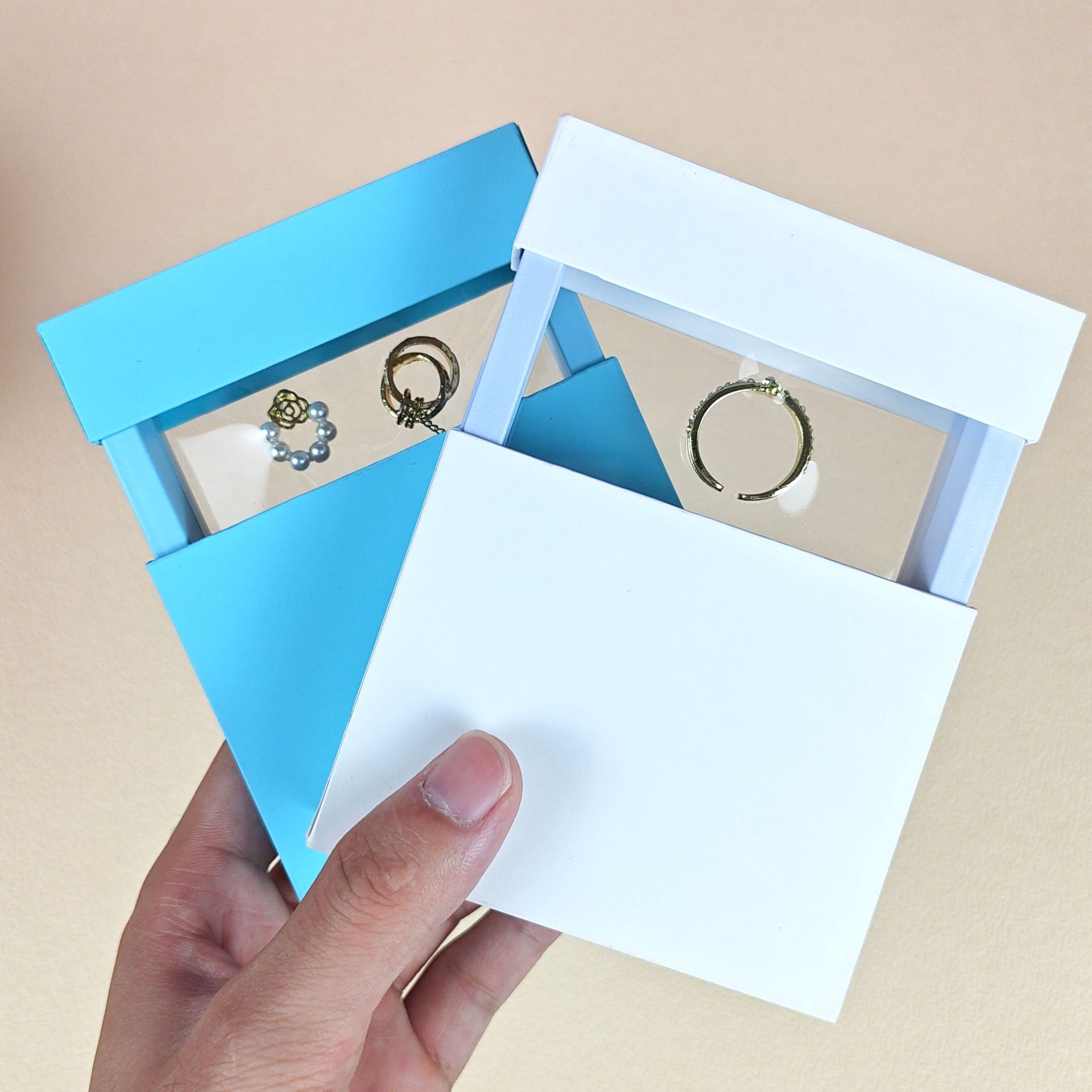 Customized Small Clear Pendant Packaging Box Jewelry Box Empty Box Wholesale In-Stock Portable Drawer Box Ring Box