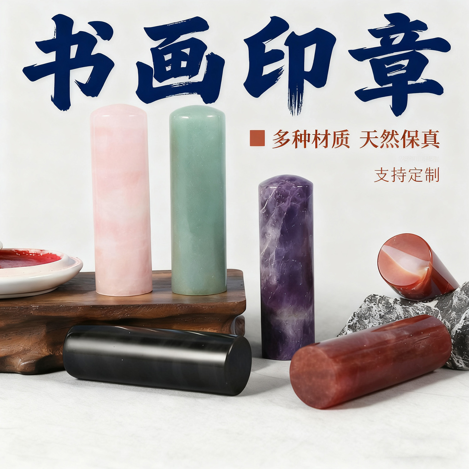 Cross-Border Multi-Material Name Calligraphy and Painting Round Seal, Name Seal Carving, Clear Calligraphy and Painting Art Collection Gemstone Seal