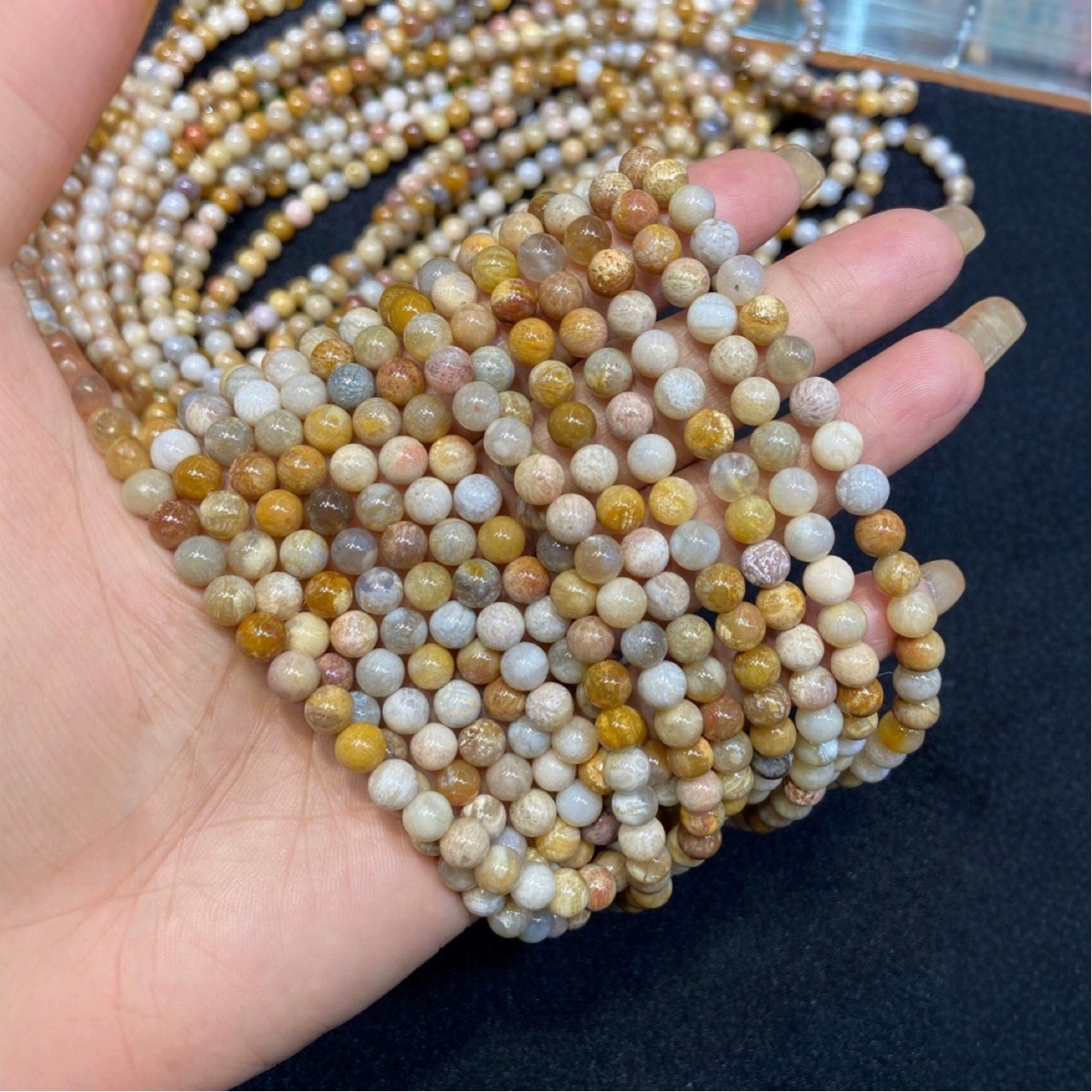 Indonesia coral jade multi-ring bracelet round beads DIY multi-treasure bracelet chrysanthemum stone jade pattern clear
