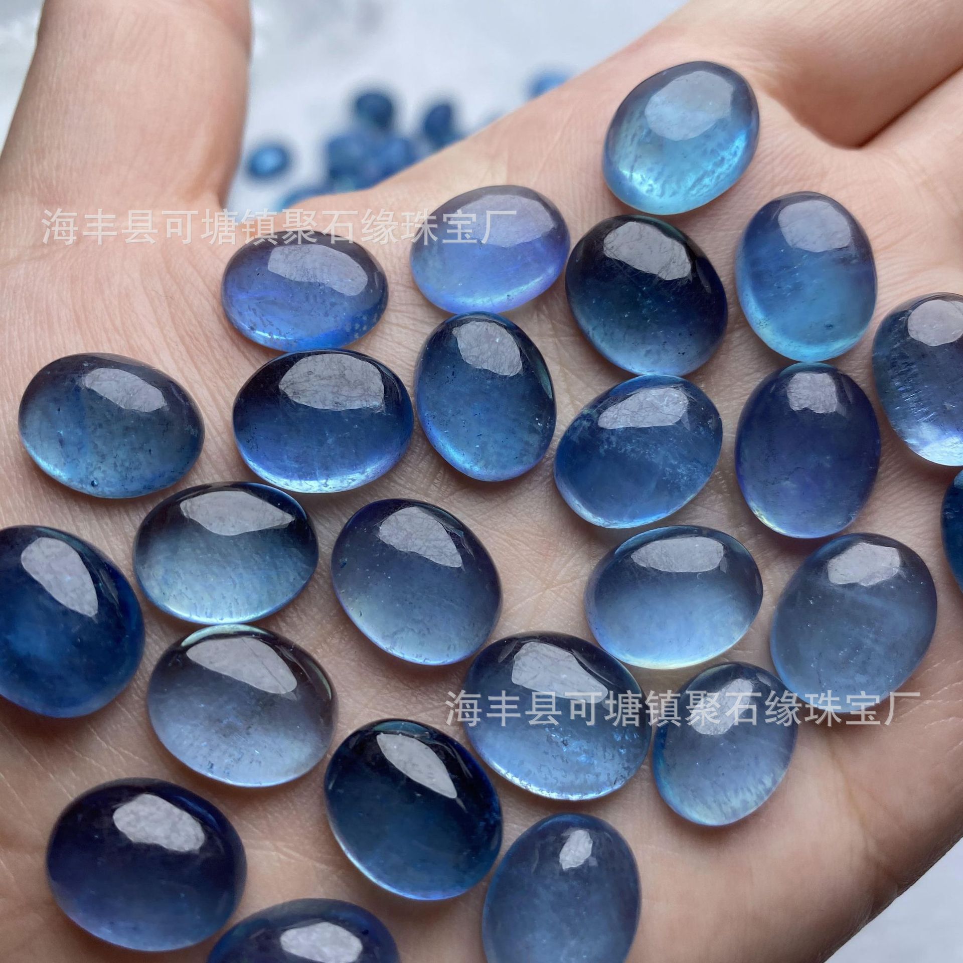 Natural crystal aquamarine oval egg surface bare stone dark blue transparent fluorescent clear crystal aquamarine ring