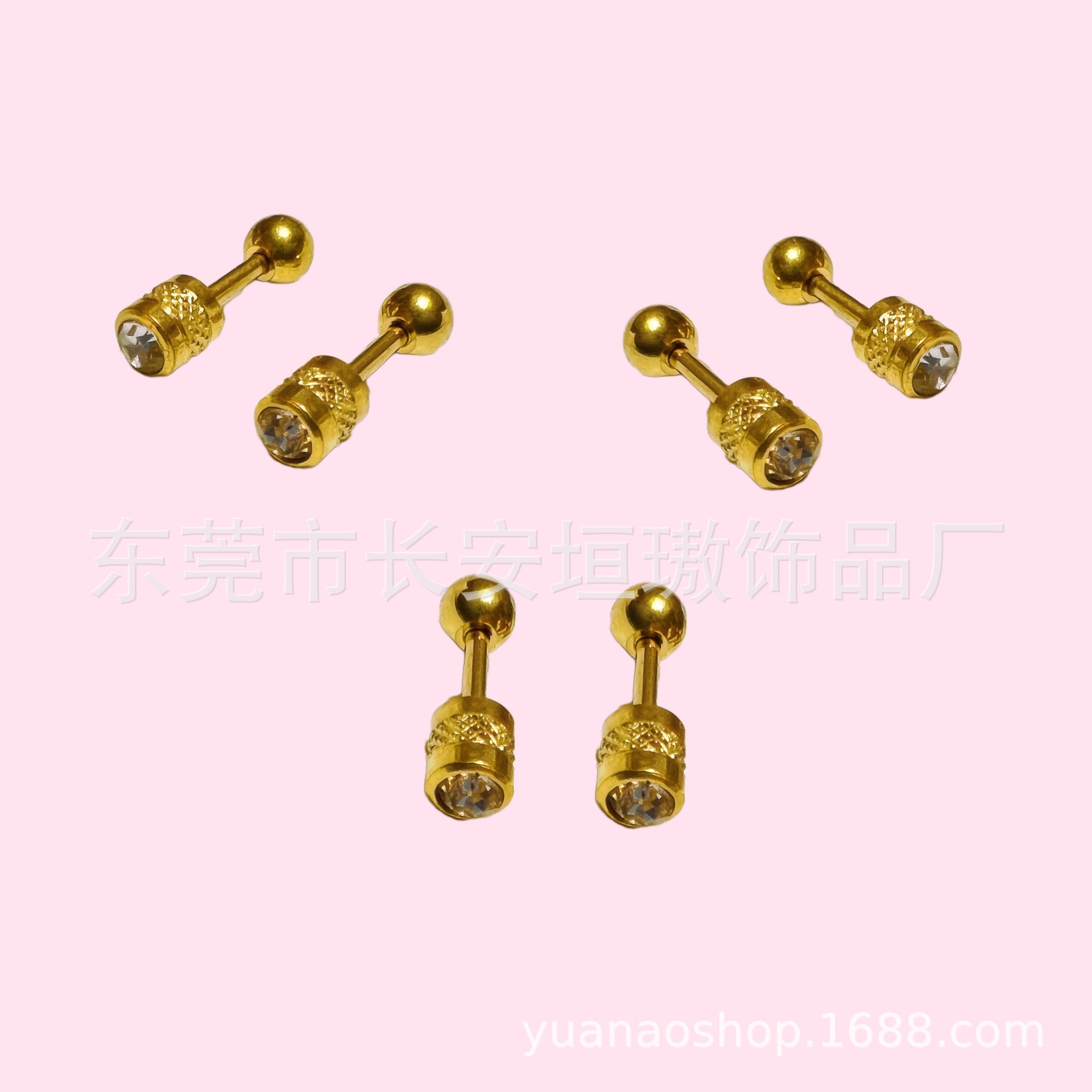 Cross-border supply of European and American fashion simple embossing with diamond stainless steel earrings sweet clear earrings