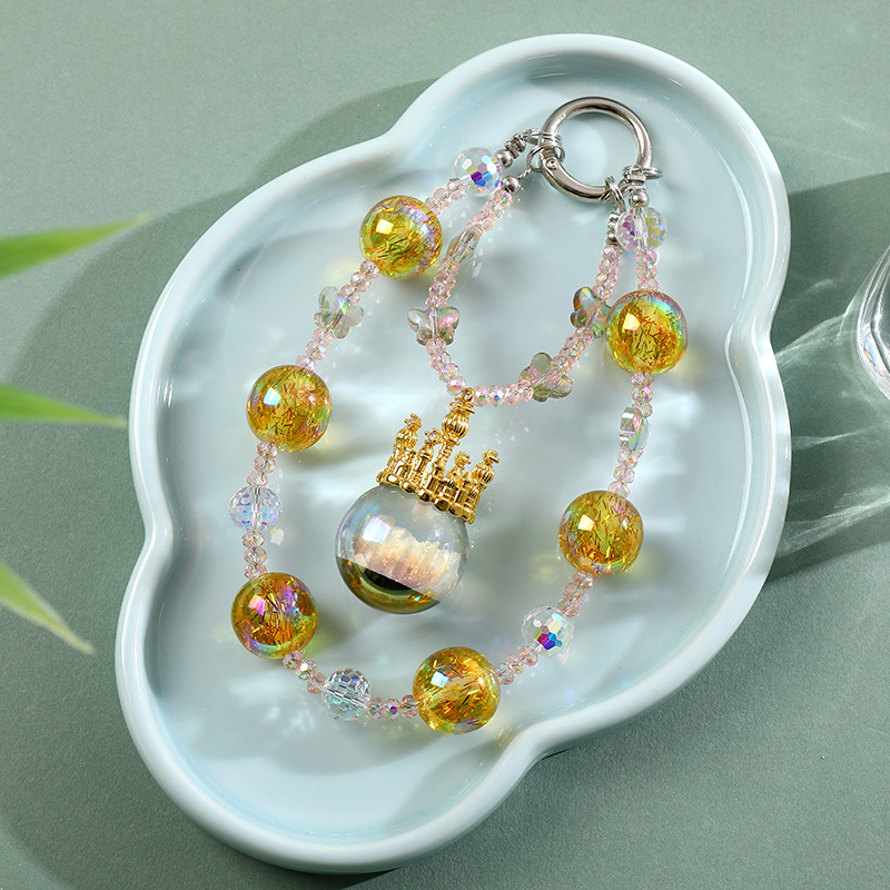 Advanced Crystal Mobile Phone Chain Castle Pendant Hanging Chain Bag Hanging Accessories Keychain Wrist Chain Short Live Wholesale