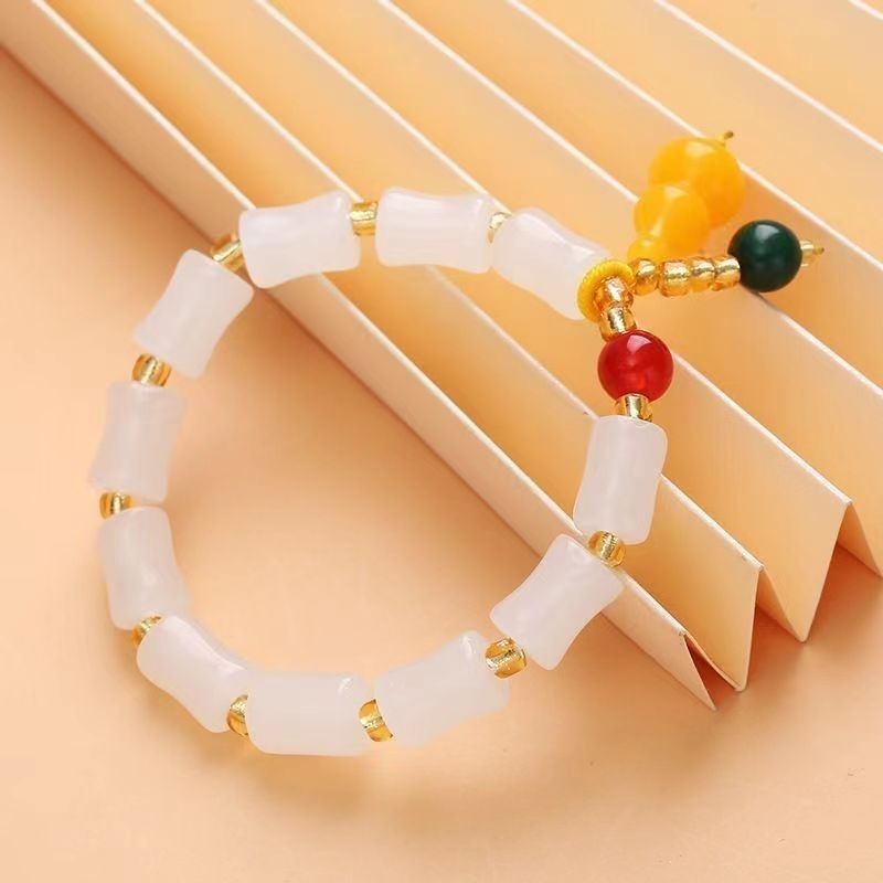 Shore Bamboo Festival High Rise Antique Imitation White Jade Bracelet Small Clear All-match No Fade Huuru Cute Female