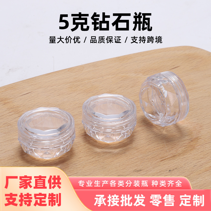 Manufacturer Supplies 5g Diamond Cream Box Powder Box Cosmetic Packaging Bottle Plastic Sub-Bottle Round Bottom Cream Bottle