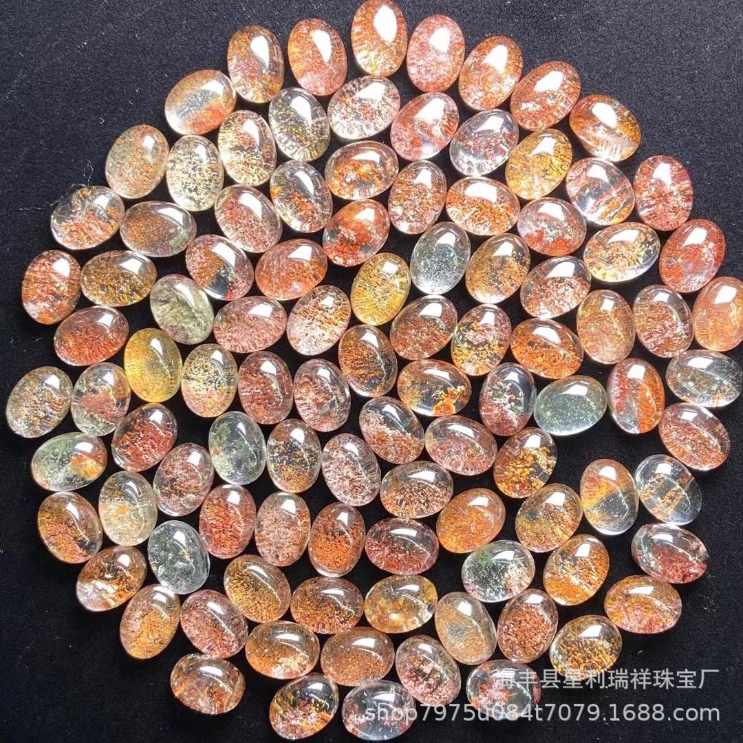 Natural Ghost Crystal Flower Ghost Oval Ring Surface Bare Stone Artistic Conception Rich and Clear Crystal Crystal Surface Flat Bottom