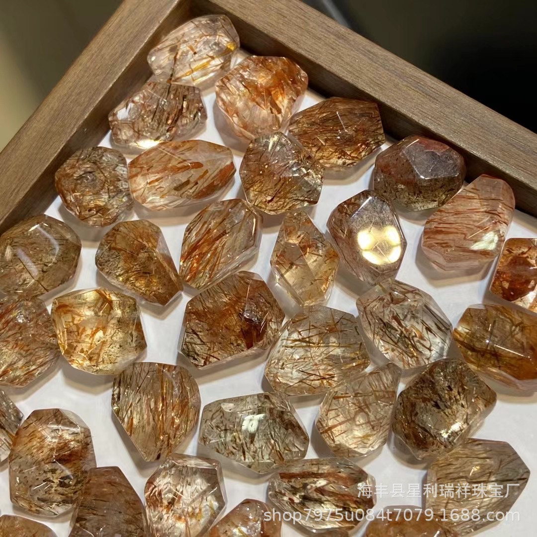Natural Venus golden hair crystal loose beads single beads transparent clear fine hair crystal diy accessories with beads bare stone