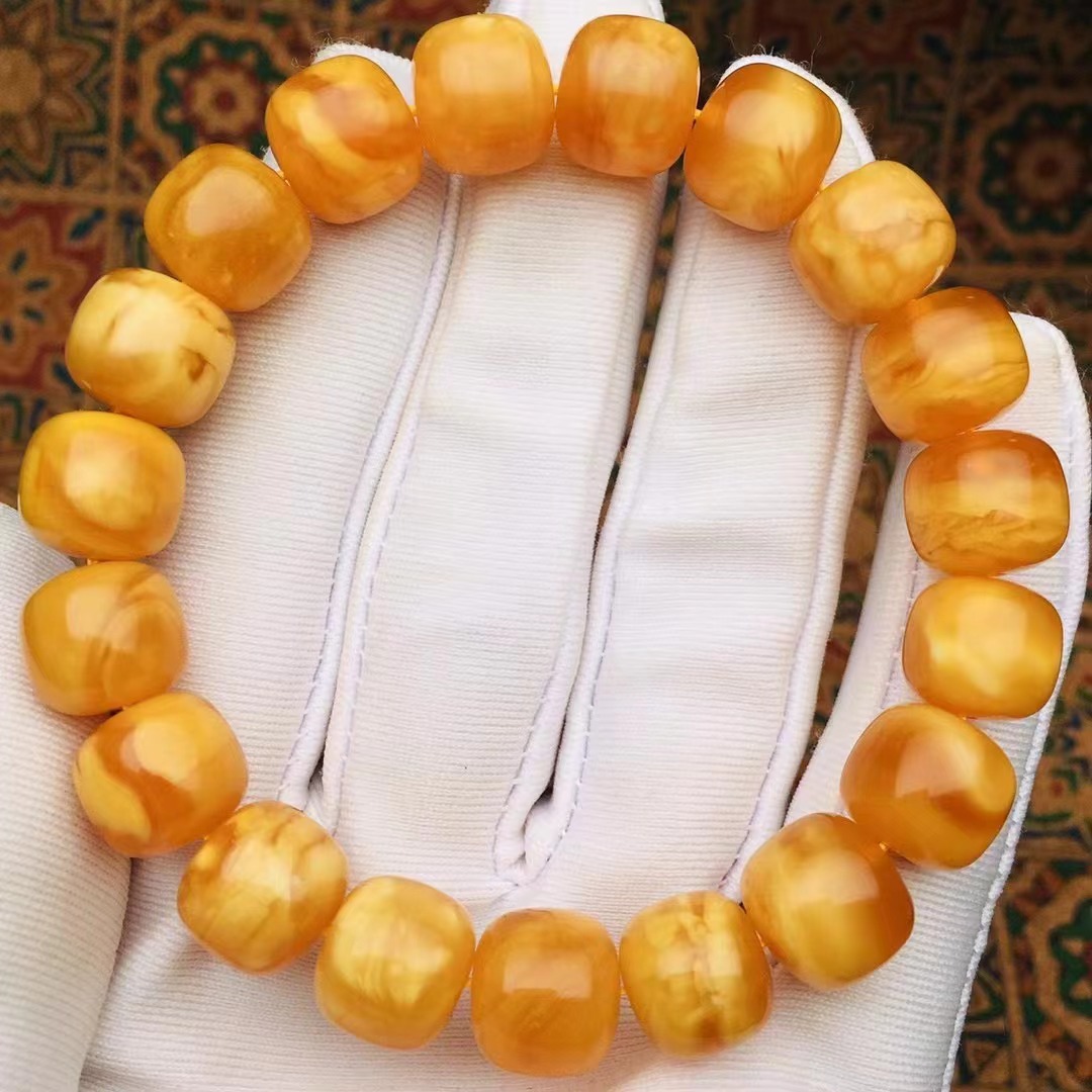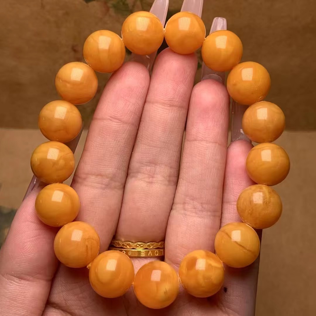 Natural Beeswax Old Honey Flower Wax Old-Style Bracelet with Rich Wax Texture and Clear Patterns, Wholesale Amber Bracelet Supply
