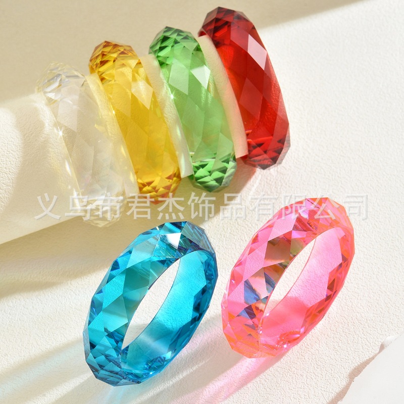 2025 New Fashionable Faceted Transparent Crystal Bracelet with Clear Cut Corners and Rhombus Exaggerated Bracelet High-End Jewelry