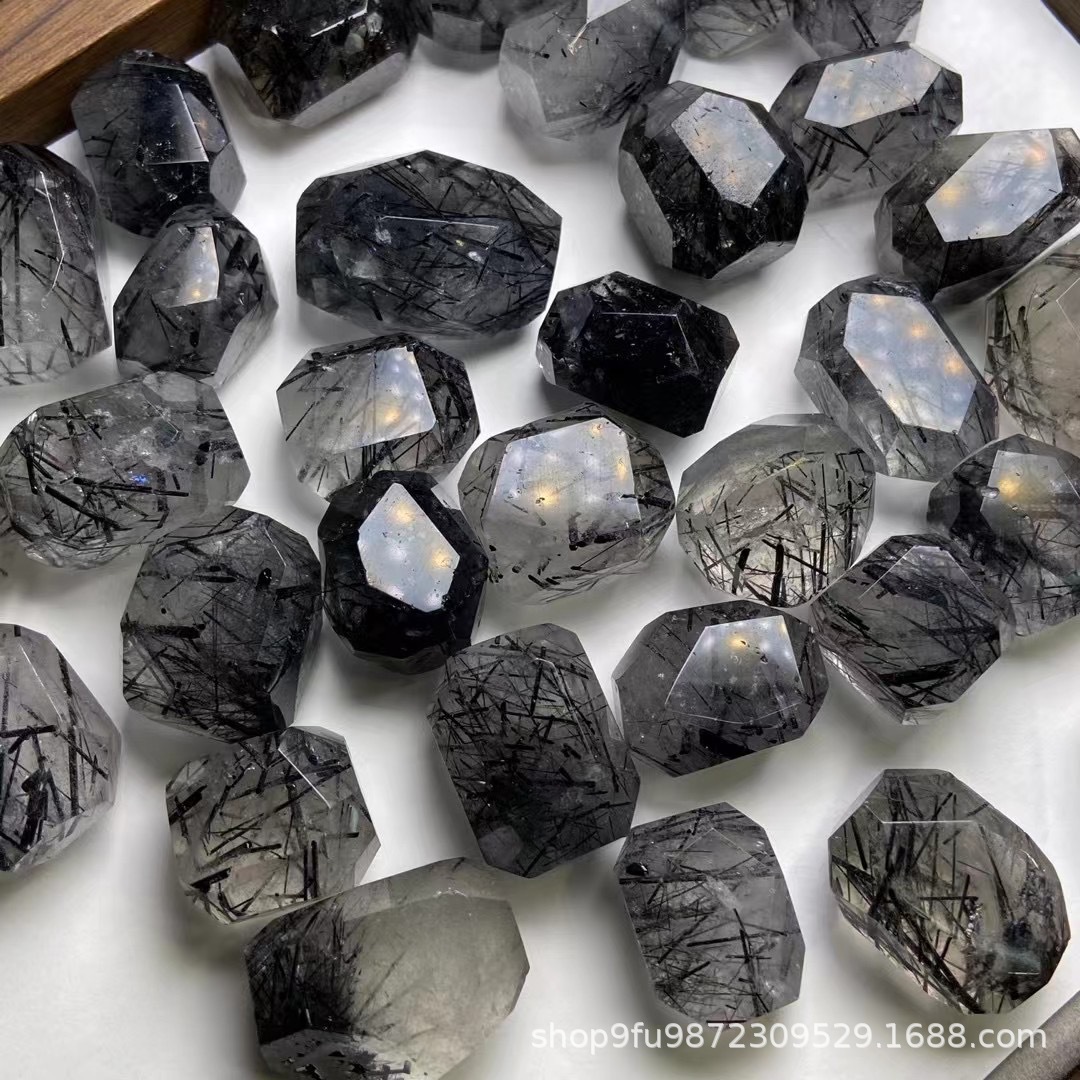 Natural Black Hair Crystal Random Loose Stone Black Hair Crystal Hair Strands Clear and Transparent Handmade DIY Bracelet Raw Stone Faceted Wholesale